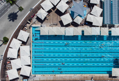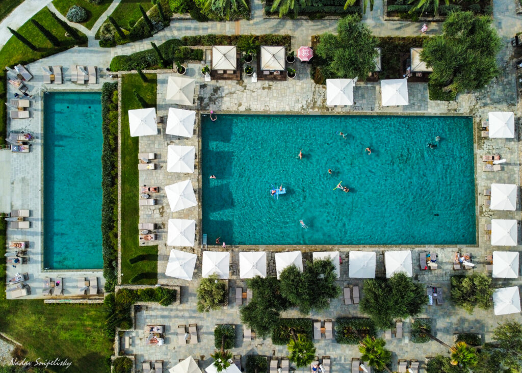 בסוף הקיץ בבריכה באי קרן בצפון יוון. הכל מסתדר כל אחד במקום הנכון נהנה מהזמן האחרון של הקיץ