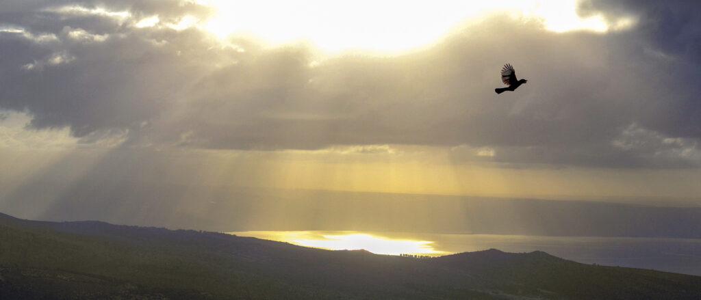 זהו הנוף הנשקף ממצפה אמירים שבגליל העליון לעבר הכנרת. בוקר סתווי של יום חול. קצת אחרי זריחת השמש. העורבנים תרים אחר מזון ומקבלים קצת חום מקרני השמש. כמה נשימה יש בצילום הזה.